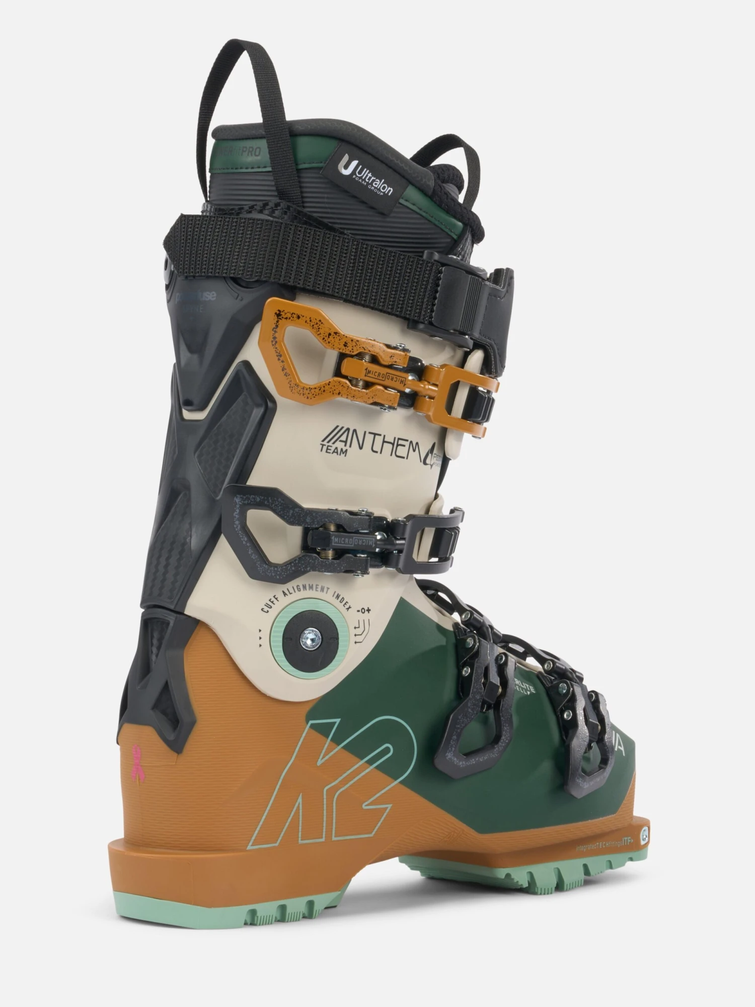 The Anthem Team boots feature stiffer foam, and an asymmetric tongue for added power and energy transfer. Ideal for the woman who needs both alpine and freeride performance without having to change boots.