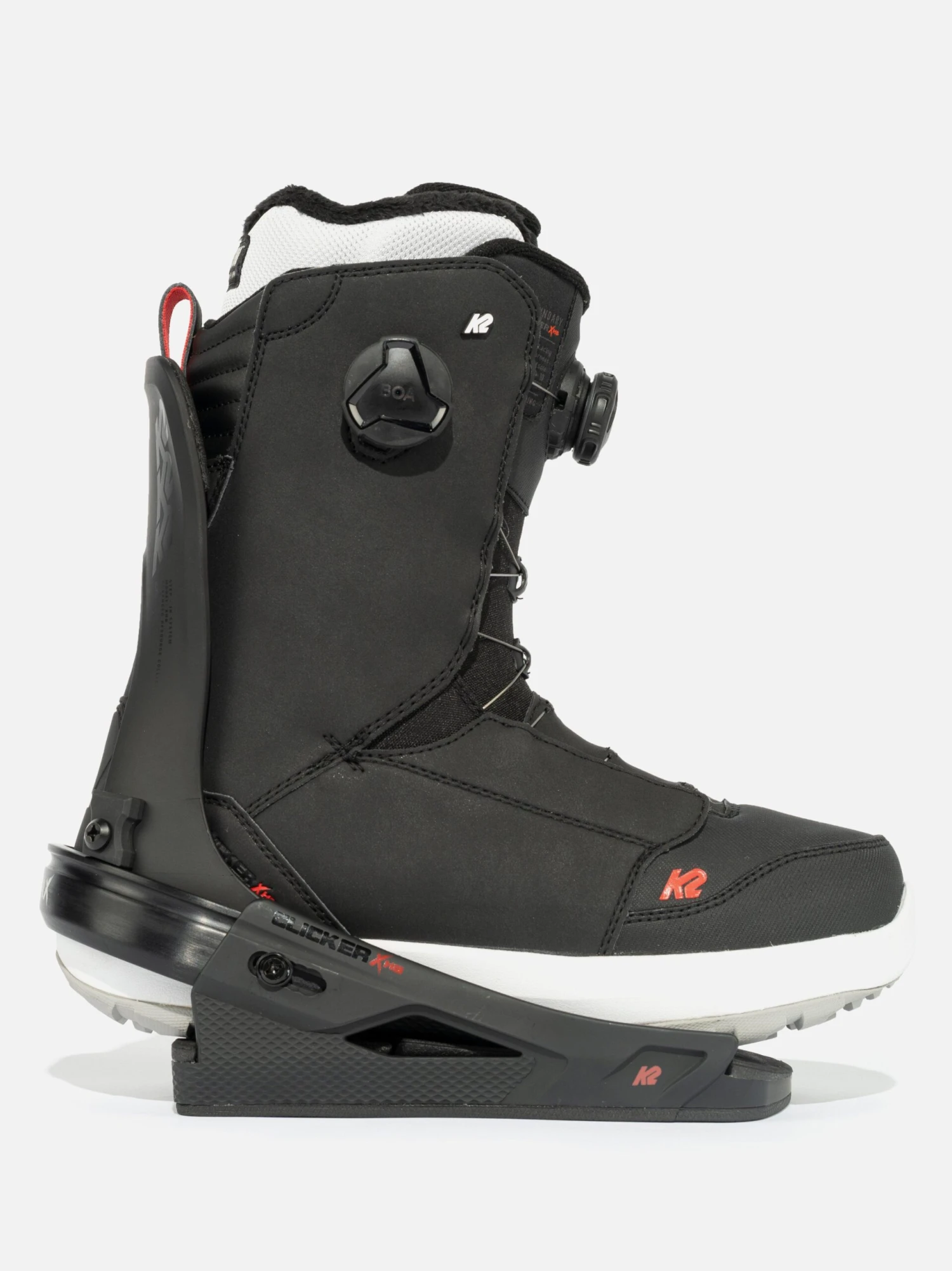 Underfoot, we’ve integrated our Clicker™ X technology into an outsole. Secure and strong integrated toe and heel mounts are integrated into a full rubber outsole. This dual-compound rubber material is grippy and durable for ice traction in the parking lot and those semi-sketchy boot packs. To put the cherry on top, an impact absorbing EVA midsole is lined with K2’s SpaceHeater™ material to keep your foot warm and comfortable all day.