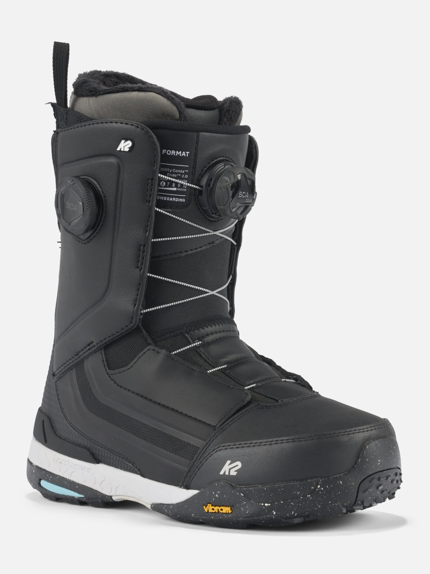 Underfoot, K2’s all-new ultra-rugged Vibram® V5 Outsole provides industry-leading traction and durability in all conditions and terrain. This Vibram® rubber compound comprises at least 30% recycled rubber. Better grip, better for the environment. The V5 rubber outsole is wrapped around a midsole made up of a traditional EVA and K2’s proprietary Harshmellow™ material – helping to absorb impact, increase damping, and provide a “quieter” feel while snowboarding.