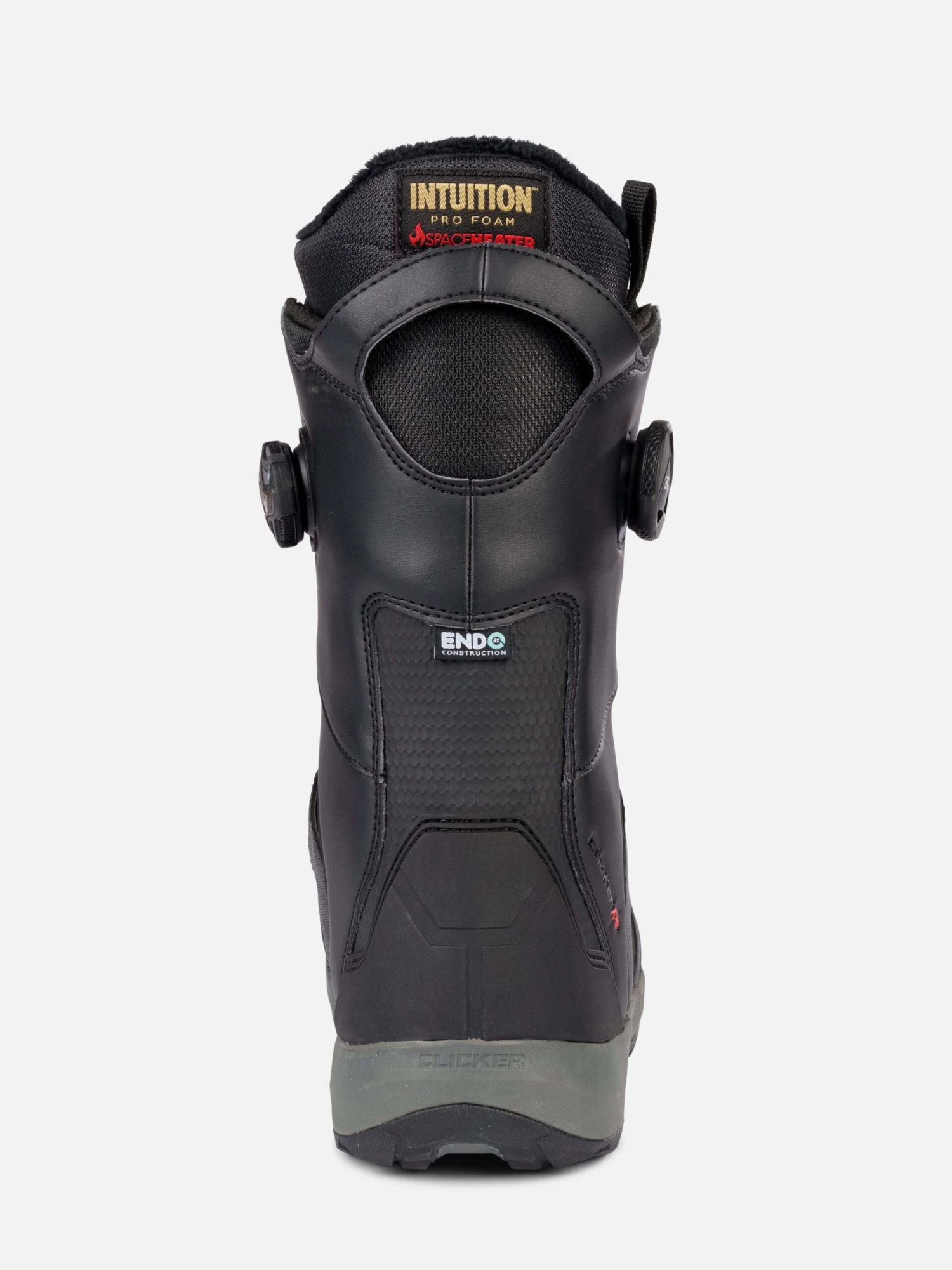 Regarding technical features, supreme fit, and ultimate response, the Thraxis Clicker™ X HB is a clear leader in the Clicker™ X HB category. The stiffest flexing and most supportive model in our collection, this snowboard boot is for the most demanding of riders. The Thraxis Clicker™ X HB Zonal BOA® Fit System features three BOA® dials, two targeting zonal exterior lacing, and one controlled K2’s Conda™ liner lacing system. By placing a soft, urethane “chip” around the 45° degree of the ankle, we’ve allowed riders to micro-adjust their boot fit and eliminate heel lift.